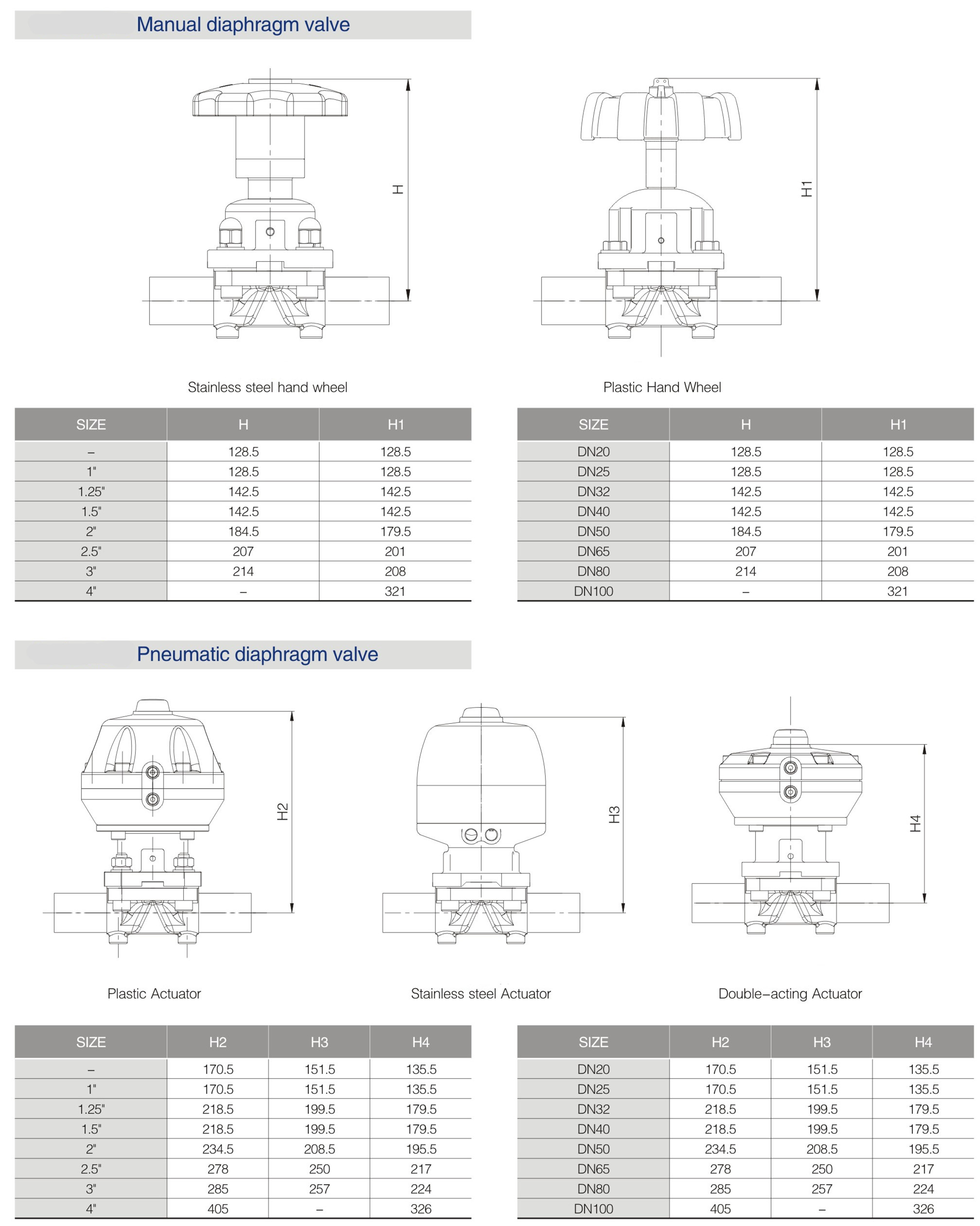 Please check the detailed size of diaphragm valve below.
